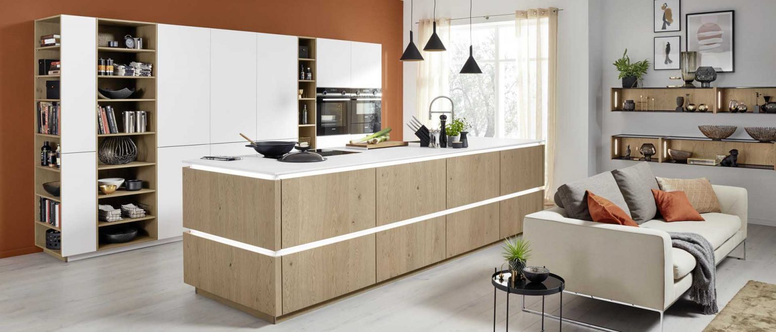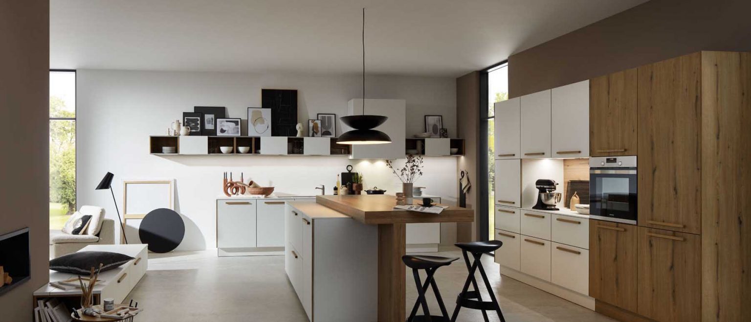Bij Sereen Keuken bieden we trots de stijlvolle en functionele eilandkeukenproducten van Nolte aan, die de norm zetten voor keukenontwerp in België. Het eilandkeukenontwerp biedt een centraal punt in uw keuken, waarbij functionaliteit en esthetiek worden gecombineerd. Het keuken-eiland dient als een veelzijdig centrum voor voedselbereiding, socialiseren en opberging. Onze elegante ontwerpen creëren een ideale omgeving voor familiediners en het ontvangen van gasten, terwijl ze vrijheid van beweging rond het eiland bieden. De eilandkeukenoplossingen van Sereen Keuken combineren elegantie en functionaliteit in het hart van uw huis.