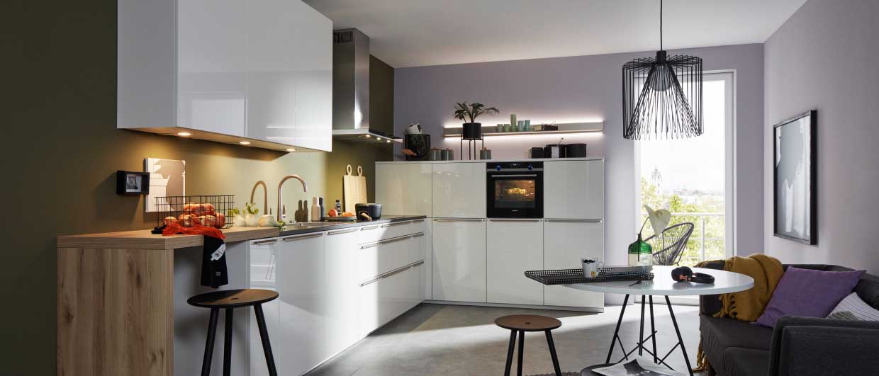 Bij Sereen Keuken presenteren we de hoogwaardige L-keukenproducten van Nolte, die de standaard zetten voor keukenontwerp in België. Het L-keukenontwerp biedt een ruim werkoppervlak tussen twee muren en maximaliseert de functionaliteit in uw keukenruimte. Met stijlvolle en moderne ontwerpen creëren onze L-keukens een esthetische sfeer, terwijl ze met hun praktische indelingen de voedselbereiding efficiënter maken. De L-keukenoplossingen van Sereen Keuken combineren functionaliteit en elegantie, waardoor een perfecte omgeving in het hart van uw huis ontstaat.
